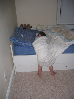 The other night I went in the boys' rooms to open their windows. It had been a pretty hot day. I opened the door of JD's room, and this is what I found: